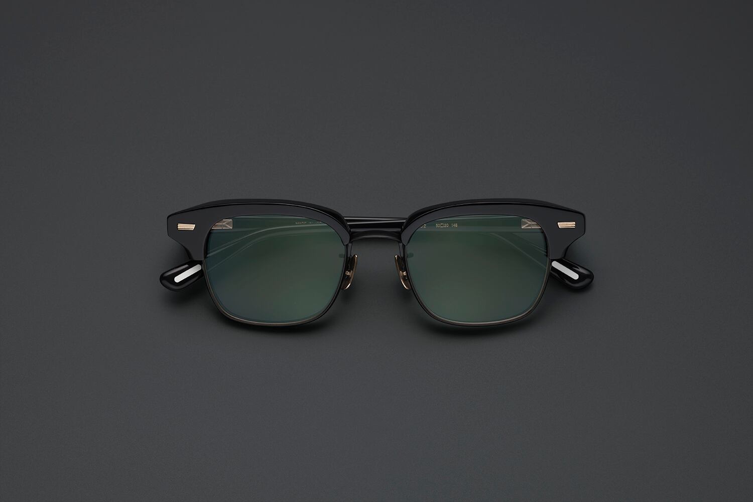 10mm厚のアセテートから削り出しエッジを効かせたブローパーツ、4.5mm厚の丸みあるメタルリムが相反する互いの質感を際立たせ、洗練された造形美を表現しています。