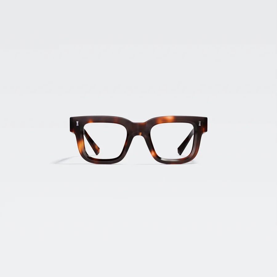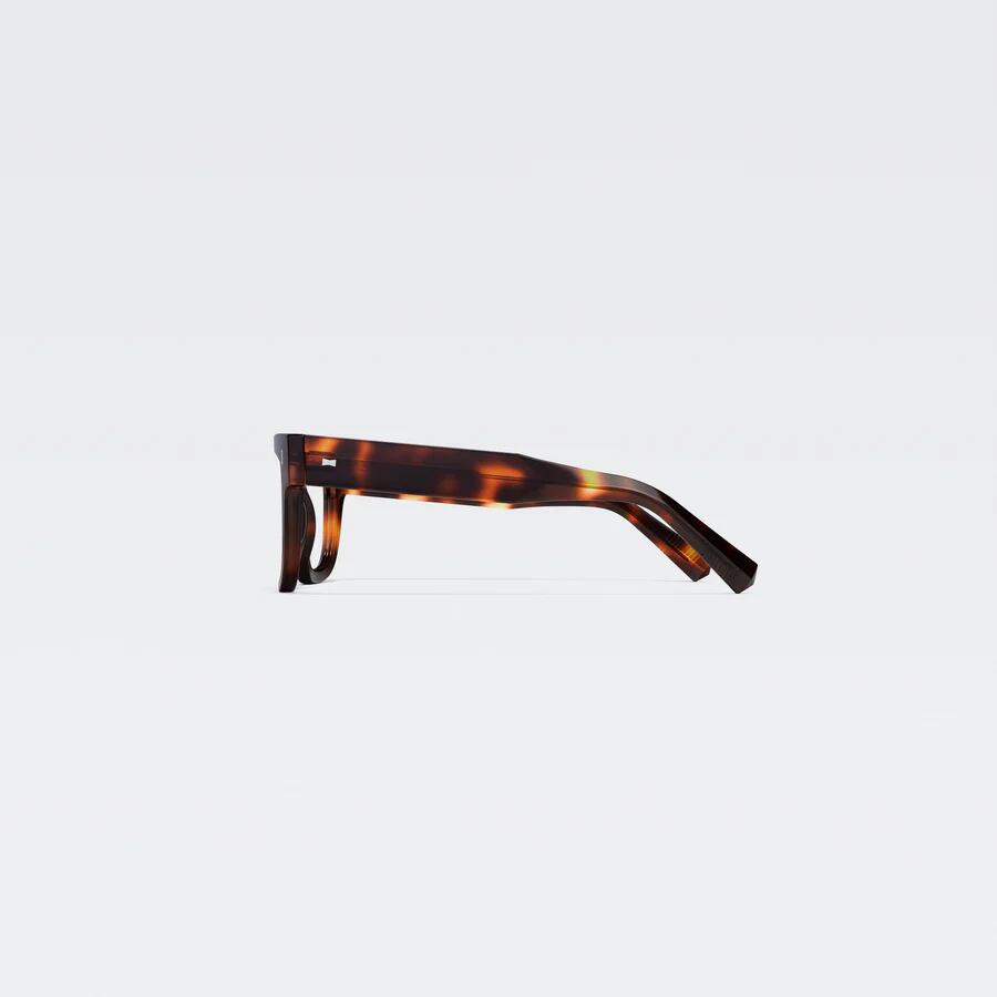 エッジの効いた太めのリムが特徴。力強く直線的なデザイン・厚みのあるテンプルが印象的。テレビジョンカットが施されたリムは奥行きのあるスタイルを演出している。